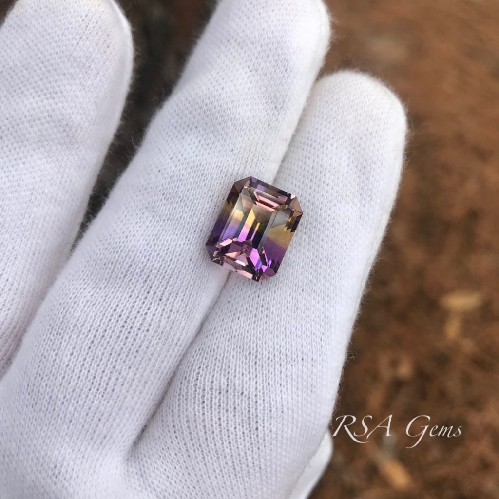 Flawless Bolivian ametrine in a traditional emerald cut.