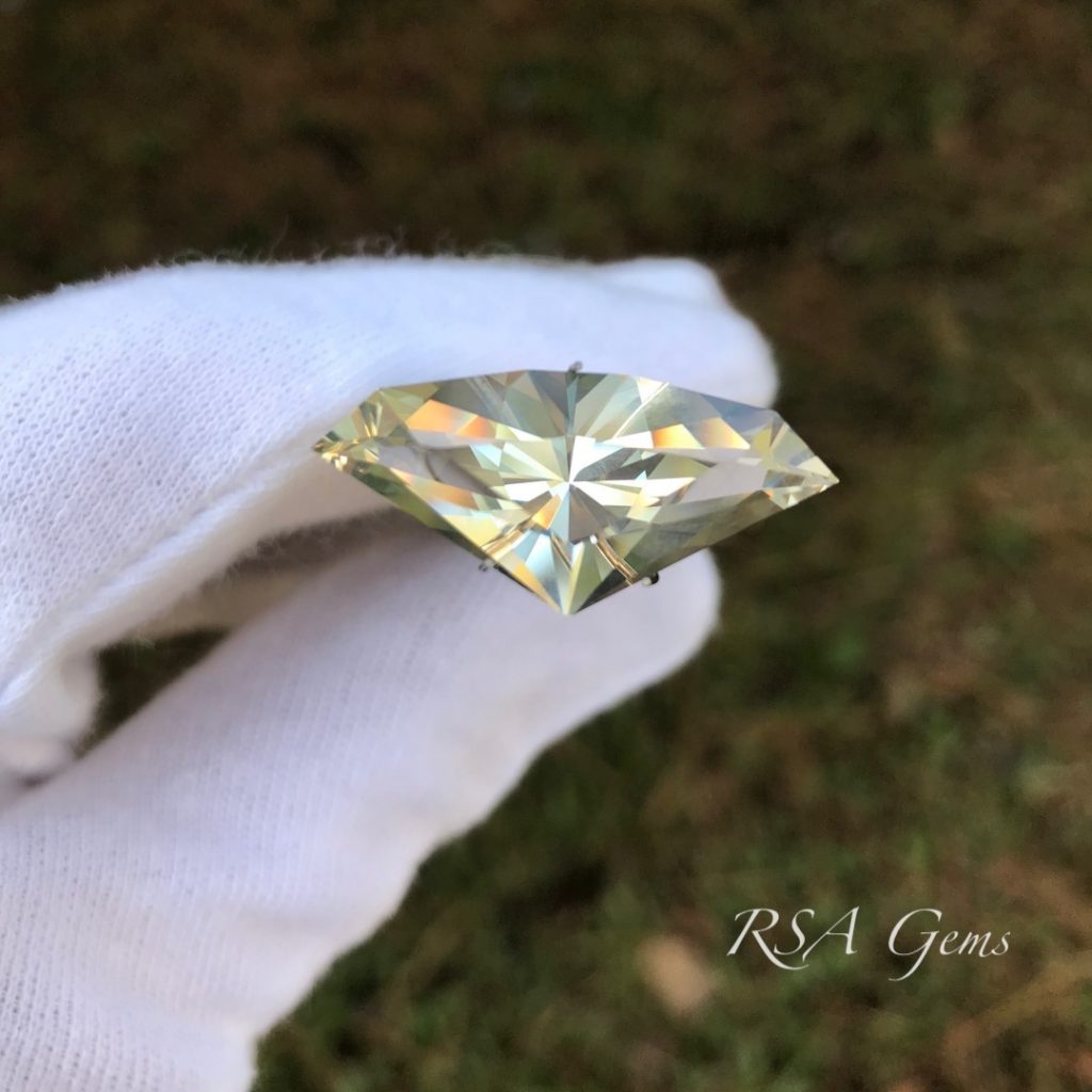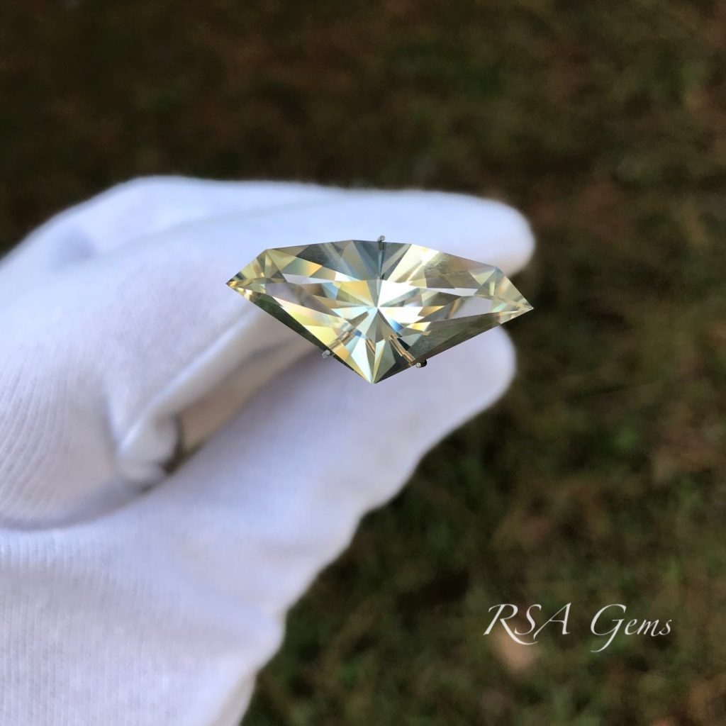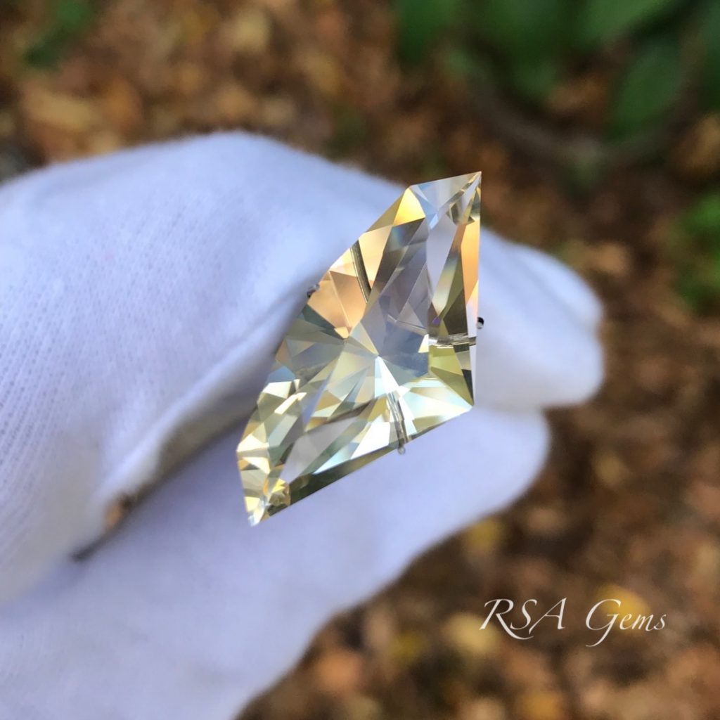 Ethiopian opal cut in Loren’s “Opal Bomb” design. It is a slightly yellowish, very clean stone. For a gem with very few big facets, it really gathers and splits the light nicely.