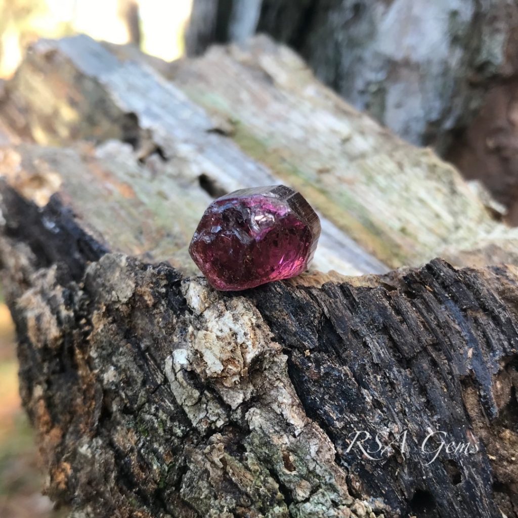 Original Hexagon cut pink tourmaline that shows some bright orange depending on the viewing angle.