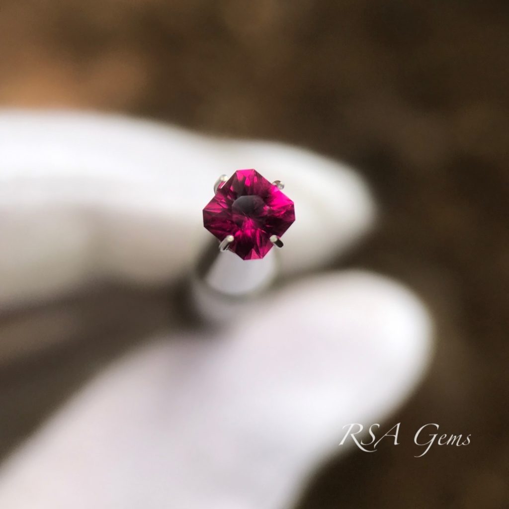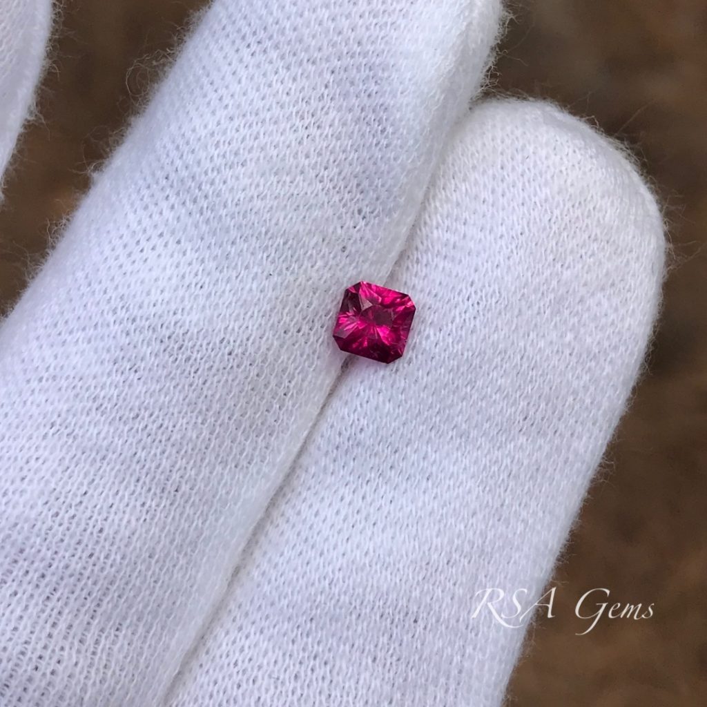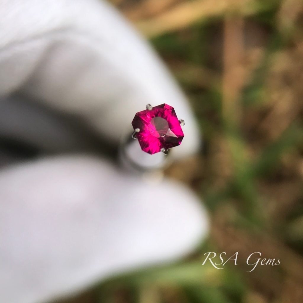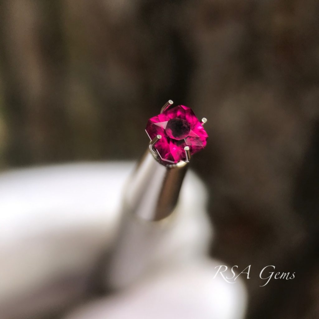 This diminutive stone has vivid pink/red color that really stands out.