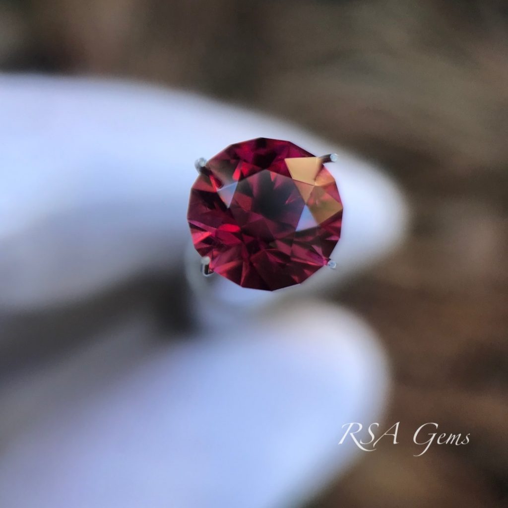 Beautiful pinkish purple gem. We were told this was color change, however we don’t really see a strong change indoors. But photos do show some orange in the stone depending on the direction of viewing. Either way, a really pretty gemstone.