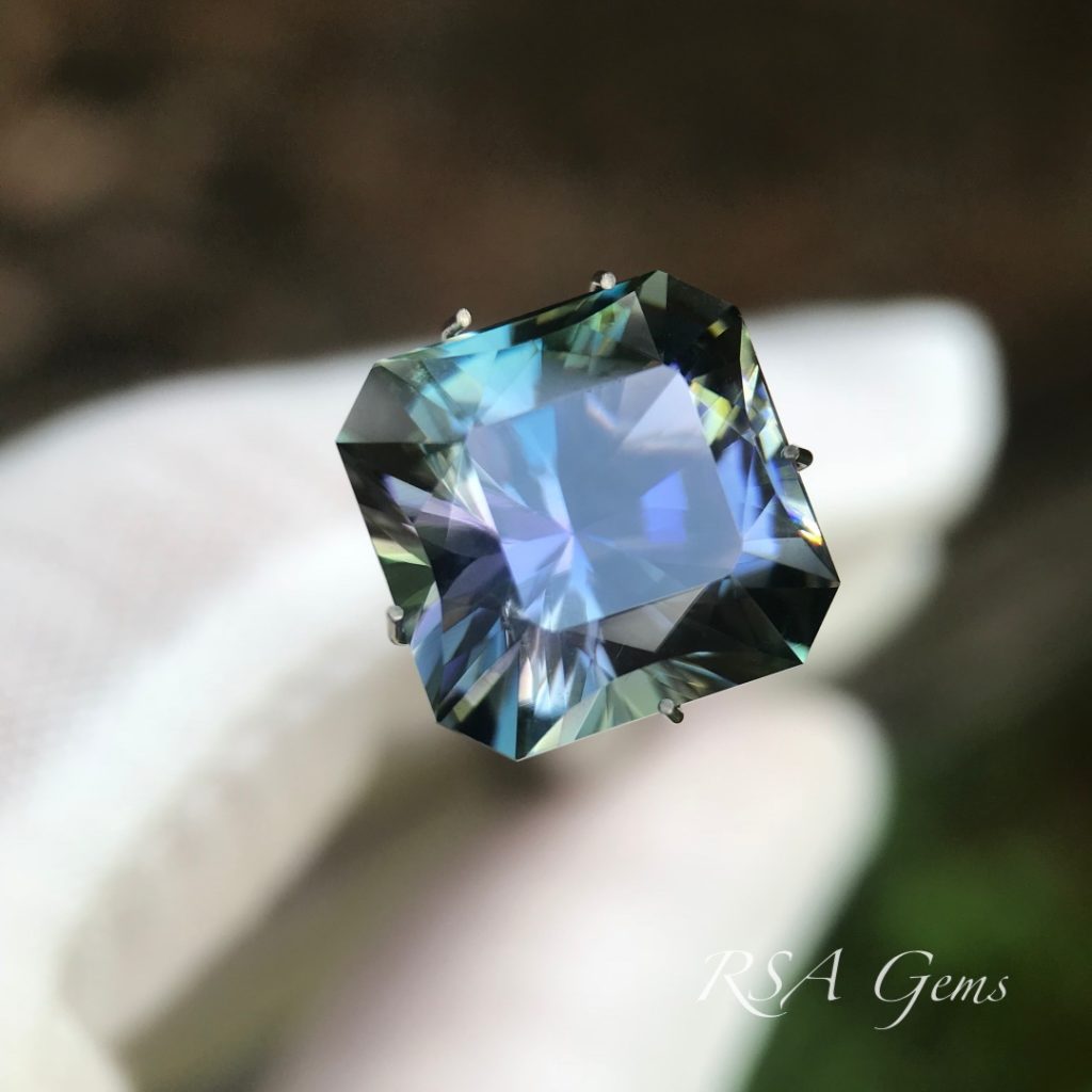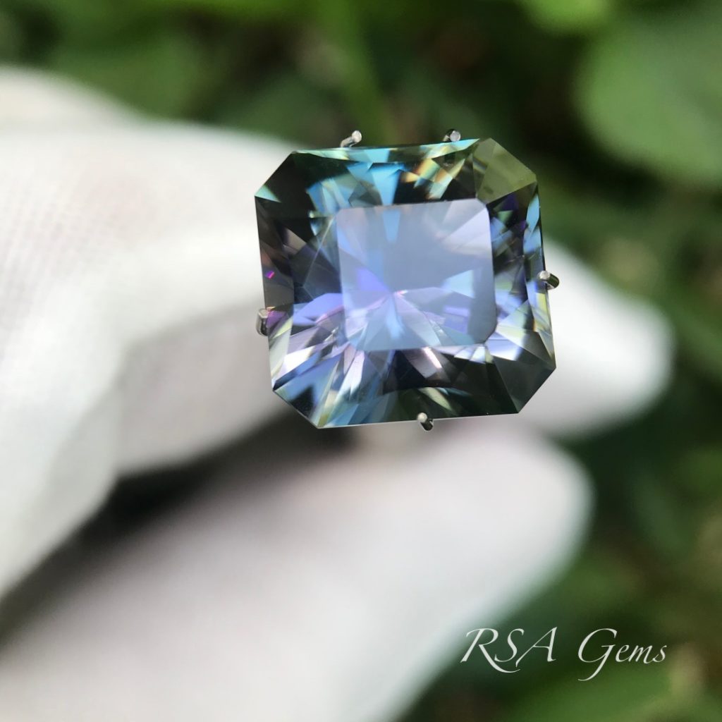 An unheated tanzanite is all natural and untreated, something that is hard to find. This stone has blue, purple, and green because it is trichroic, meaning each crystal axis displays a different color.